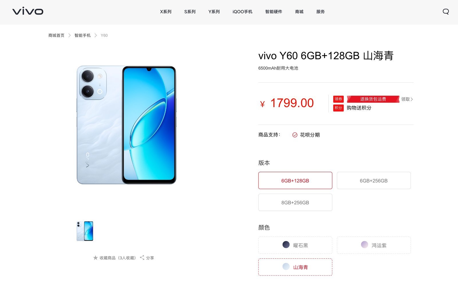 此外股票配资的公司,vivo Y60 还支持 SGS 五星整机抗跌耐摔认证,还支持 IP65 级防尘防水,实现从内到外的全面防护。vivo Y60 售价 1799 元起,但目前该机型在官方商城处于缺货状态。